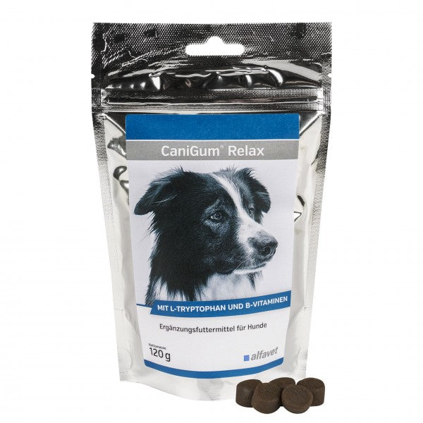 mit Kräuterextrakten (Hopfen, Melisse, Lavendel, Kamille und Baldrian)CaniGum® Relax dient der Ergänzung der Nahrung mit L-Tryptophan, Magnesium und B-Vitaminen.