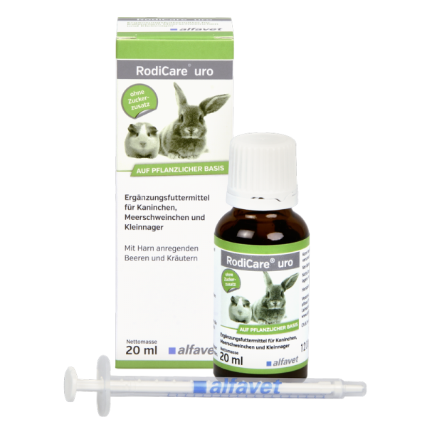 Gras- und kräuterfressende Kleinnager und Kaninchen erhalten heutzutage häufig Futter mit hohem Calcium- und niedrigem Wassergehalt (Fertigfutter, Heu). Dadurch kommt es zu hohen Calcium-Konzentrationen im Urin, wodurch die Bildung von sog. Blasenschlamm und Harnsteinen begünstigt wird. Gleichzeitig werden kaum noch Wildkräuter zugeführt, die auf natürliche Weise die Harnbildung fördern und so den Urin verdünnen. RodiCare® uro gleicht diesen Mangel aus, indem es die kräuterarme Nahrung mit entsprechenden sekundären Pflanzenstoffen ergänzt. RodiCare® uro hat einen niedrigen Calciumgehalt.