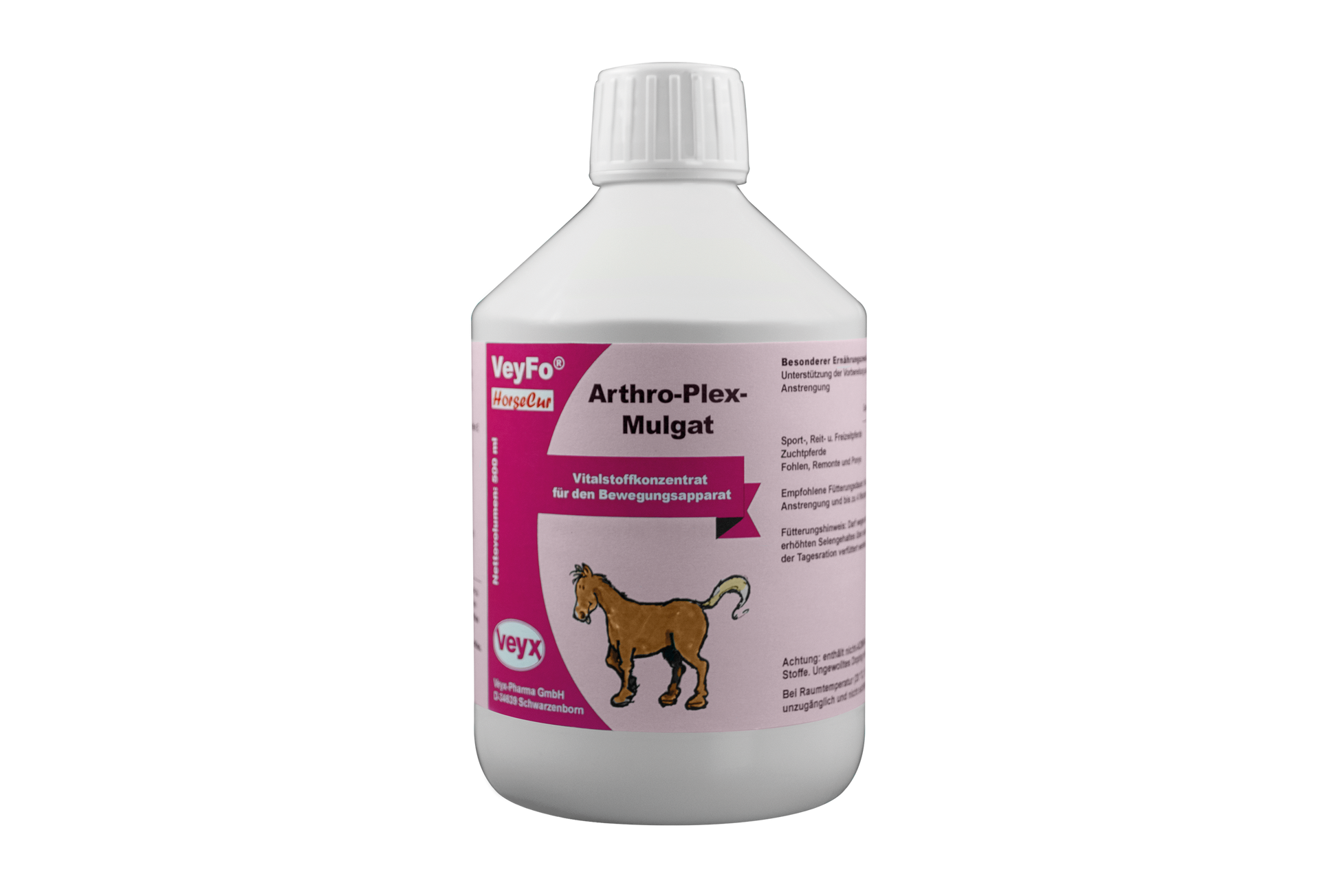 Die Versorgung mit VeyFo Arthro-Plex-Mulgat ist besonders zu empfehlen bei jungen Pferden, um den Aufbau von kräftigen Knochen und Gelenken zu fördern und Entwicklungsstörungen zu vermeiden, erwachsenen Pferden, um Verschleißerscheinungen in den Gelenken entgegenzuwirken, hohen Leistungsanforderungen in Sport und Arbeit,
